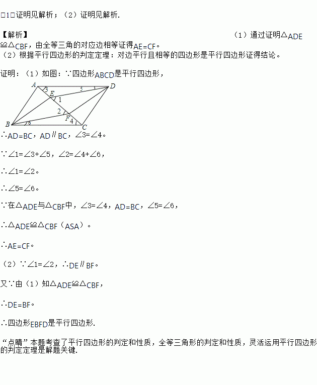 (2)求证:四边形EBFD是平行四边形.