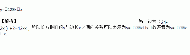 长方形的周长是24cm,其中一边长为xcm(x>0),面积为y,则这个长方形面积y与边长x之间的关系可以表示为________