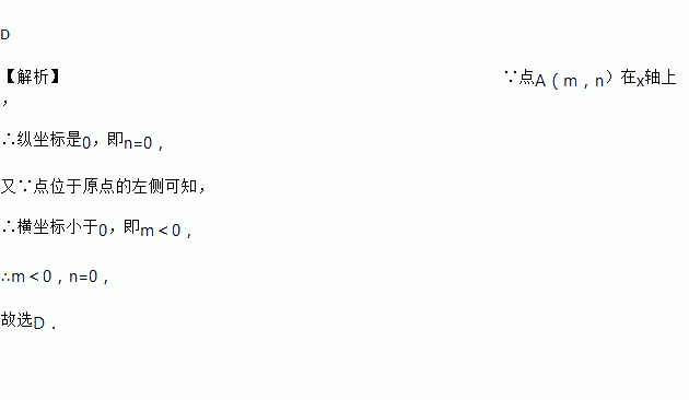 设点A(m,n)在x轴上,且位于原点的左侧,则下列结论正确的是( )