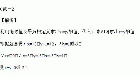 已知|x|=3,(y+1)2=4,且xy<0,求x+y的值.