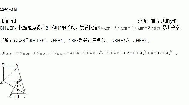 如图,四边形ABCD是正方形,△BEF是等边三角形,EF=AB,EF∥AB,连接AC,AF,CF,若AB=4,则△ACF的面积是_____.