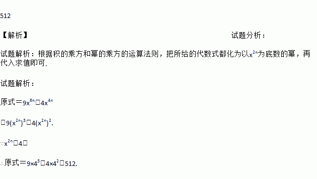 若n为正整数,且x2n=4,求(3x3n)2-4(-x2)2n的值.