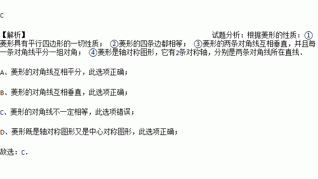 C. 对角线相等 D. 既是轴对称图形又是中心对称图形