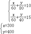 小华从家里到学校的路是一段平路和一段下坡路,假设他始终保持平路每分钟走 60m,下坡路 每分钟走 80m,上坡路每分钟走 40m,则他从家里到学校需 10min,从学校到家里需 15min.问:从 小华家到学校的平路和下坡路各有多远?