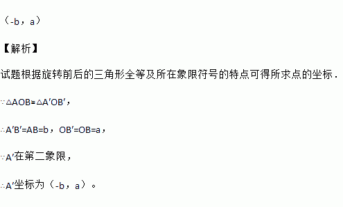 如图,将△AOB绕点O逆时针旋转90°,得到△A′OB′.若点A的坐标为(a,b),则点A′的坐标为______.