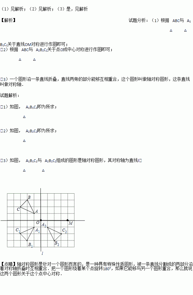 (3)△A1B1C1与△A2B2C2组成的图形_______________(是或否)轴对称图形,如果是轴对称图形,请画出对称轴.