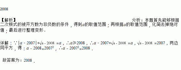 已知|a﹣2007|+=a,则a﹣20072的值是_____.