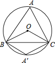 当A在劣弧BC上时,∠BA′C=180°-∠A=115°;