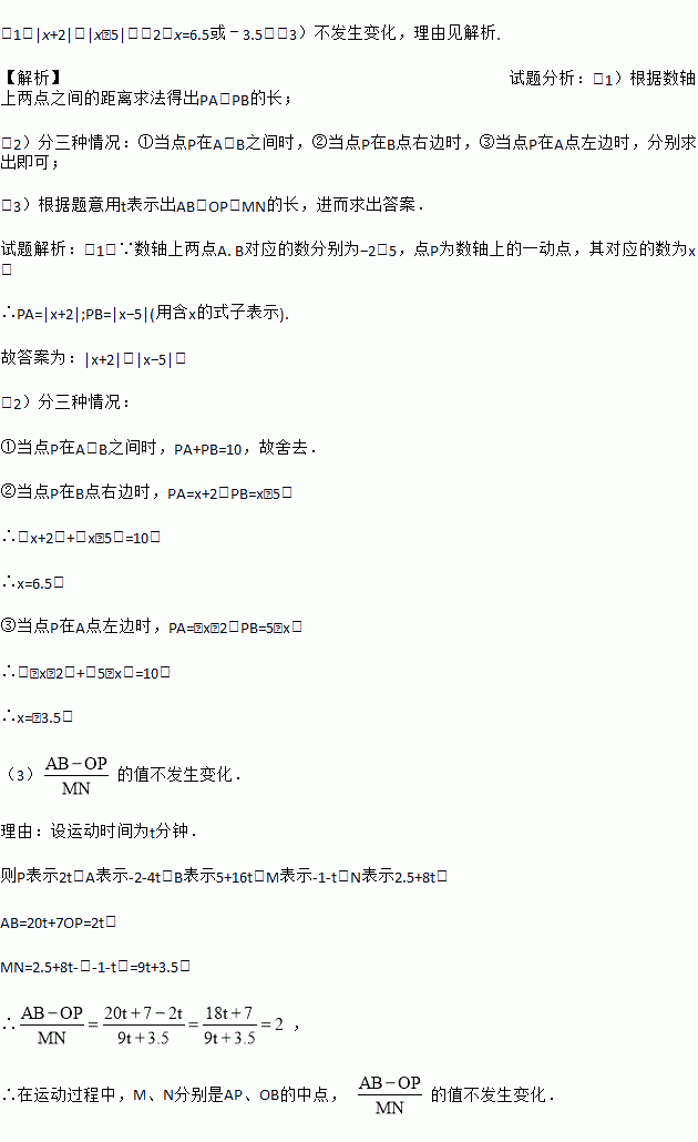 如图1,已知数轴上两点A、B对应的数分别为﹣2、5,点P为数轴上的一动点,其对应的数为x.