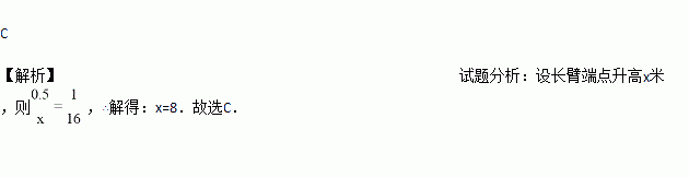 铁路道口的栏杆短臂长1m,长臂长16m.当短臂端点下降0.5m时,长臂端点升高(杆的宽度忽略不计)( )