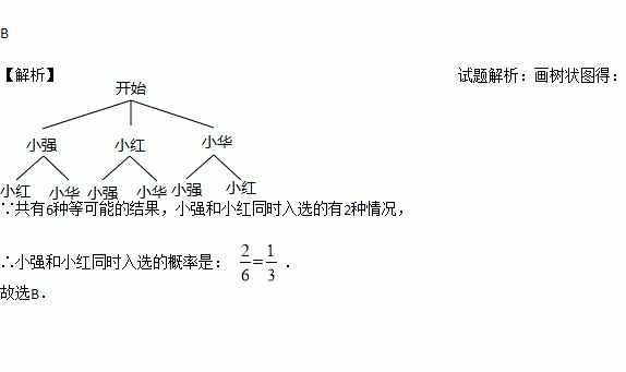 要从小强、小华和小林三人中随机选两人作为旗手,则小强和小林同时入选的概率是( )