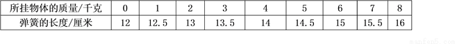 在弹簧限度内,弹簧挂上物体后弹簧的长度与所挂物体的质量之间的关系如下表: