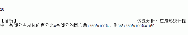 一个扇形统计图中,某部分所对的圆心角为36°,则该部分占总体的百分比为 %.