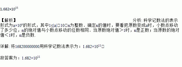 刚刚过去的2017年的“双11”网上促销活动中,天猫和淘宝的支付交易额突破168200000000元,将168200000000元用科学记数法表示为__________________.