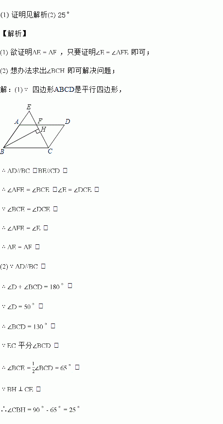 在?ABCD中,的平分线与BA的延长线交于点E,CE交AD于F.