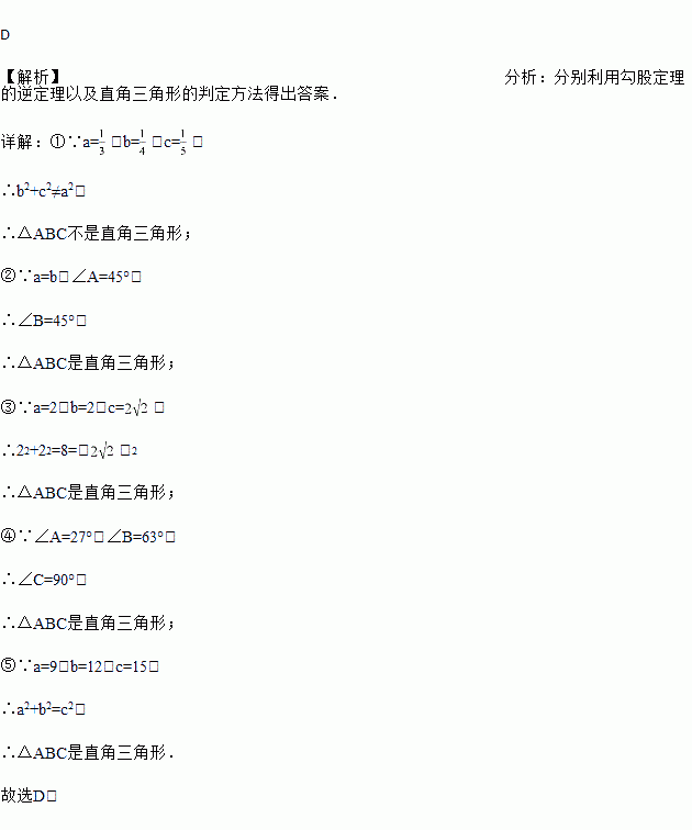 ;④∠A=27°,∠B=63°;⑤a=9,b=12,c=15