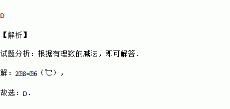 A.﹣8℃ B.8℃ C.6℃ D.﹣6℃