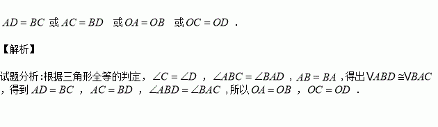 如图,已知∠C=∠D,∠ABC=∠BAD,AC与BD相交于点O,请写出图中一组相等的线段 .