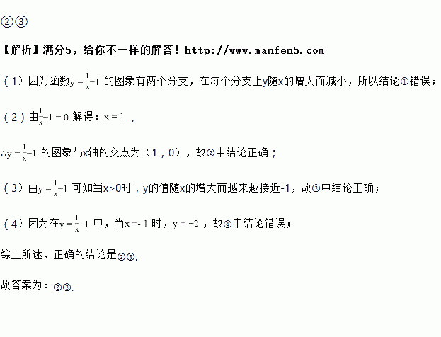 ③当x>0时,y的值随x的增大而越来越接近-1