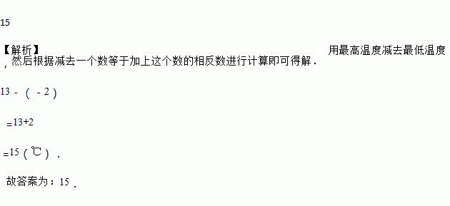 某天邵阳市的最低温度是﹣2℃,最高温度是13℃,这一天的温差是________℃.