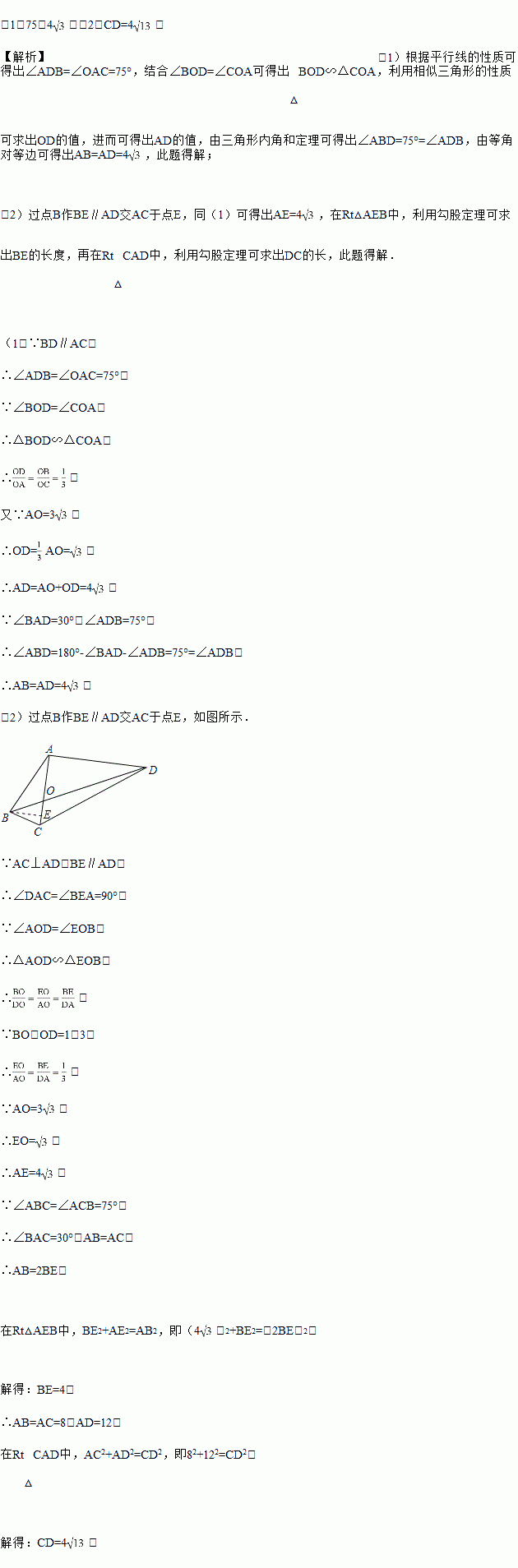 ,∠ABC=∠ACB=75°,BO:OD=1:3,求DC的长.