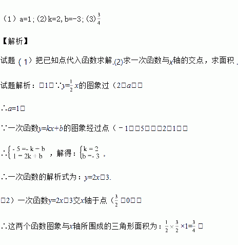 已知一次函数y=kx+b的图象经过点(-1,-5),且与正比例函数y=x的图象相交于点(2,a),求: