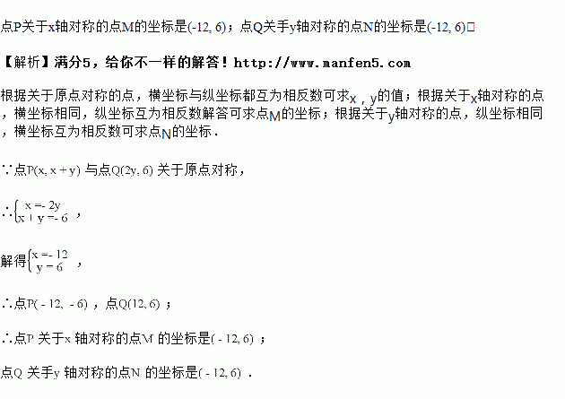 已知点与点关于原点对称,求点关于轴对称的点的坐标及点关手轴对称的点的坐标.