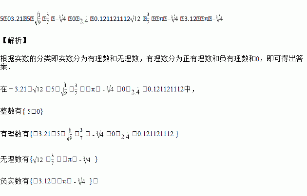 在下列各数﹣3.21,,5,,,﹣π,,0,,0.121121112中: