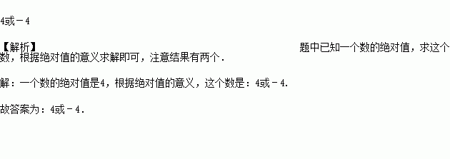 已知一个数的绝对值是4,则这个数是__________.
