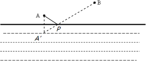 此时军官从军营A出发先到P点,再去同侧的B地开会路途最短.