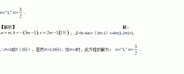 关于的一元二次方程,其根的判别式的值为1,求m的值及该方程的根.