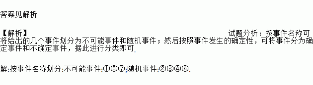 °ÑÏÂÁÐʼþ»®·ÖΪÁ½Àà,²¢Ëµ³ö»®·Ö±ê×¼.