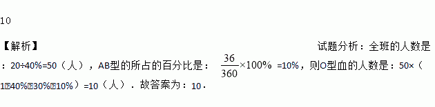 小明同学根据全班同学的血型绘制了如图所示的扇形统计图,已知A型血的有20人,则O型血的有____人.