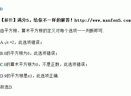 C. 一个数的算术平方根一定是正数 D. 9的平方根是±3