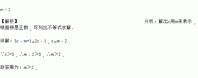 已知一元一次方程3x-m+1=2x-1的根是正数,那么的取值范围是____________。![]()