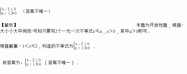 试写出一个由两个一元一次不等式组成的一元一次不等式组,使它的解集是-1<x≤2,这个不等式组是_______.