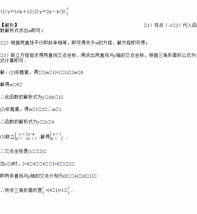 (3)求满足(2)条件的直线与直线y=-3x+1的交点,并求这两条直线与y轴所围成的三角形面积.