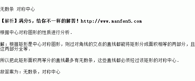 在一个矩形中,把此矩形面积两等分的直线最多有________,这些直线都必须经过该矩形的________.