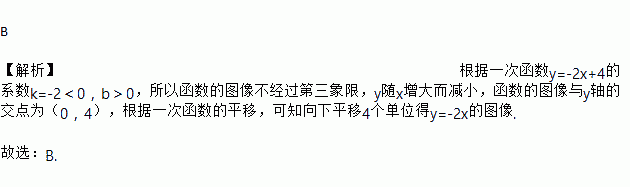 C. 函数的图象向下平移4个单位长度得y=﹣2x的图象