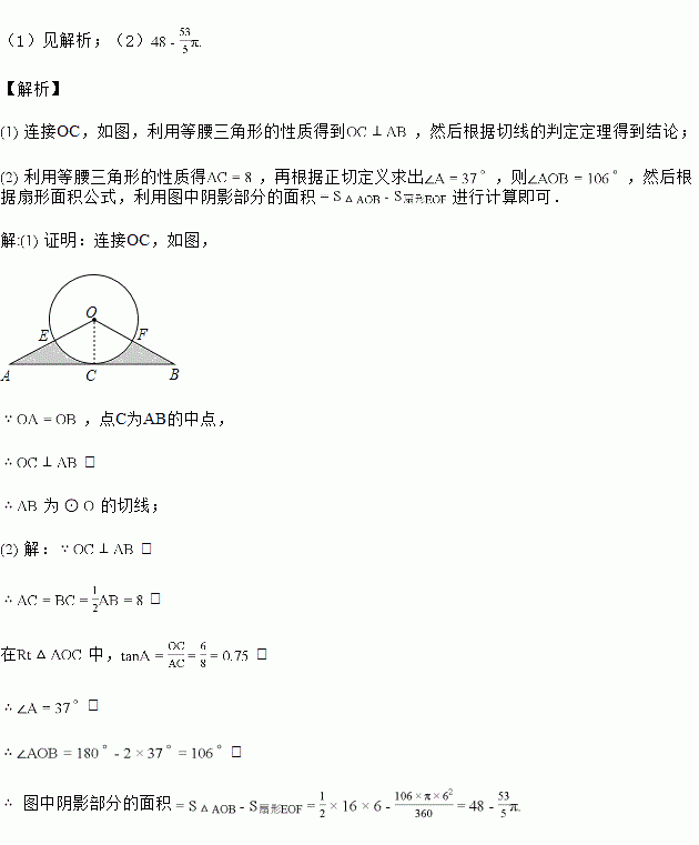 如图,在中,,点C为AB的中点,,以点O为圈心,6为半径的圆经过点C,分别交OA、OB于点E、F.