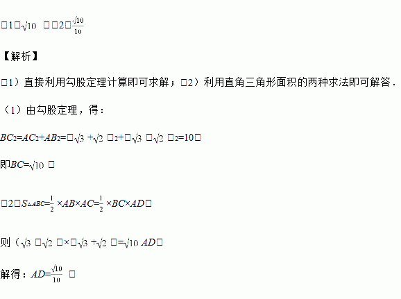 如图,直角三角形ABC中,AD是斜边BC上的高,已知AC=+,AB=﹣