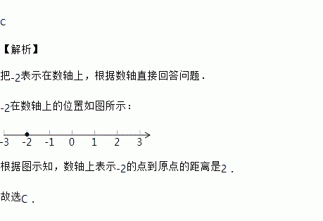 数轴上表示-2的点到原点的距离是 ( )