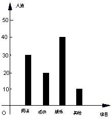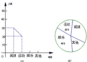 (3)娱乐人数:100×40%=40(人),其他人数:100-30-20-40=10(人).