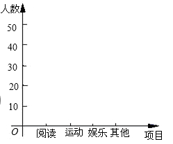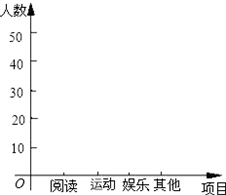 (2)首先根据条形统计图求得阅读所占的百分比,再进一步求得其他所占的百分比及其圆心角;