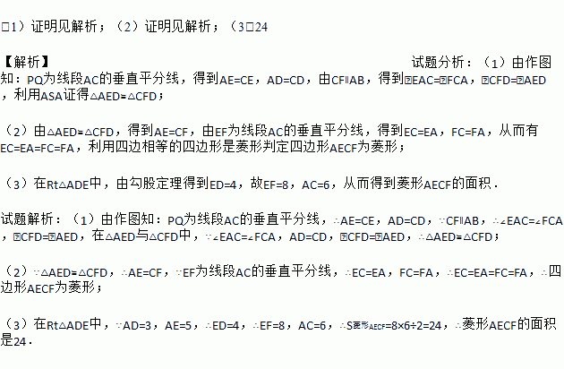 (3)若AD=3,AE=5,则菱形AECF的面积是多少?