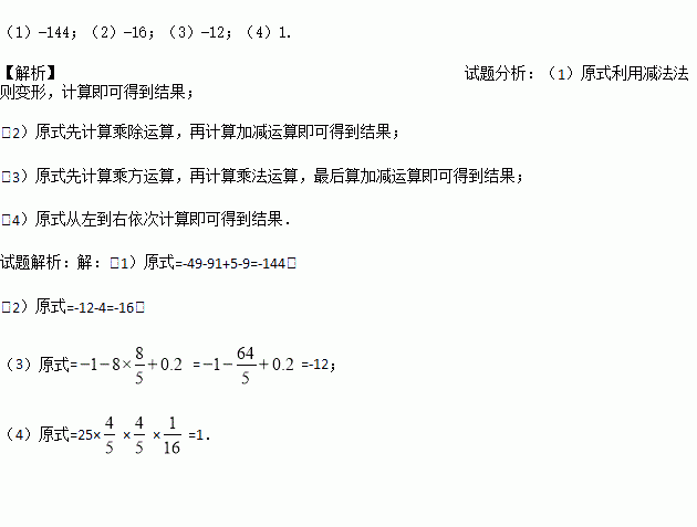 (1)(﹣49)﹣(+91)﹣(﹣5)+(﹣9)