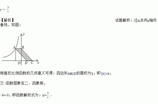 如图,点A是反比例函数图象上一点,过点A作AB⊥y轴于点B,点C、D在x轴上,且BC∥AD,四边形ABCD的面积为3,则这个反比例函数的解析式为_____.