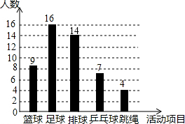 (3)先求出样本中参加排球活动项目的学生所占的百分比,再乘以600即可.