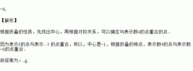 如图,已知在纸面上有一数轴,折叠纸面,若表示1的点与表示的点重合,则这个折叠中,表示数4的点与表示数 的点重合.