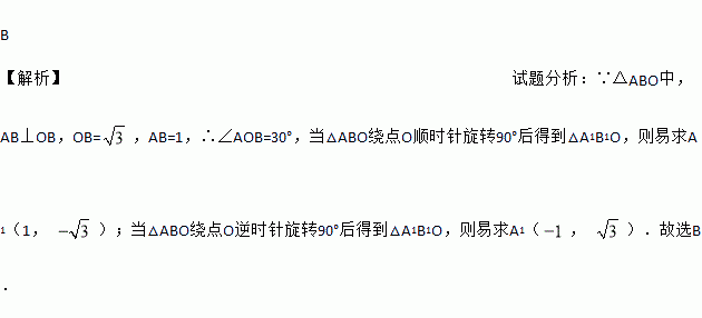 ,AB=1.将△ABO绕O点旋转90°后得到△A1B1O,则点A1的坐标为( )